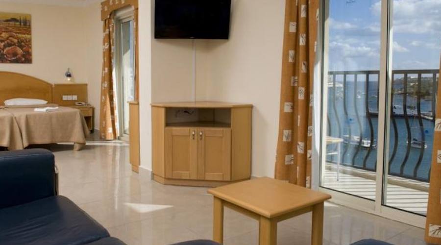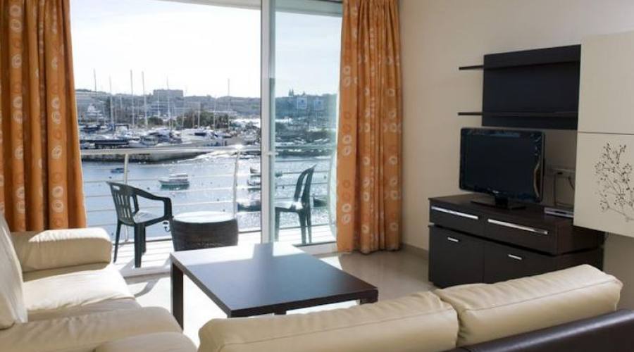 Questi appartamenti dispongono di un balcone con vista sul mare e godono di una magnifica vista del palazzo storico di Manoel Island, la capitale di Malta La Valletta e il porto Marsamxett tradizionale. Sono spaziosi, hanno aria condizionata regolabile, zona soggiorno con TV al plasma con canali di base, unita ad una cucina funzionale con tavolo da pranzo e 6 sedie. Ampio balcone con 2 poltrone e un tavolino. Anche le due camere da letto sono entrambe dotate di aria condizionata, comò, comodino e un armadio. La lavatrice è disponibile nel moderno bagno. Questi appartamenti sono situati a pochi passi dall'edificio principale dell' hotel. E gli ospiti che soggiornano in questi appartamenti possono usufruire delle strutture alberghiere. Pulizia inclusa, il cambio asciugamani viene fatto due volte a settimana, cambio biancheria ogni 5 giorni. Wi-fi gratis.