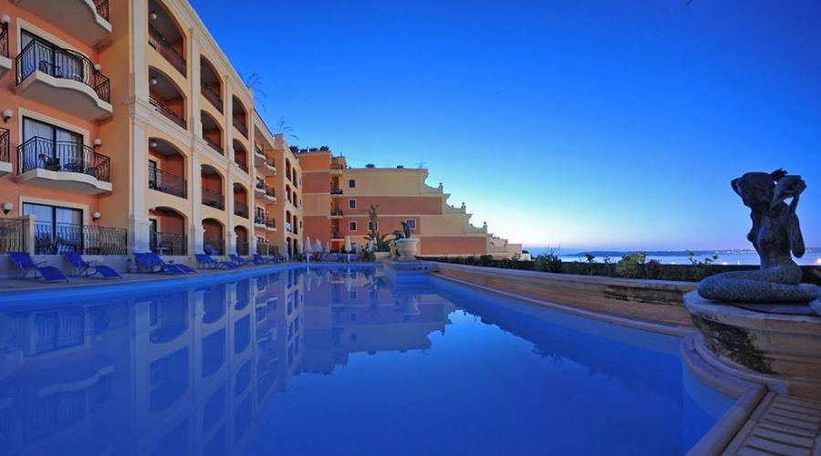 Il Grand Hotel si trova nella bocca del porto di Mgarr e la valle verde che lo circonda. L' Hotel gode delle vedute panormiche delle altra isole di Malta e Comino come sfondo  e del bel mare che le circonda. Osservato dall'alto, con le barche che pescano e la vista incomparabile, si aggiunge un tocco romantico all' ospitalità eccellente offerta dall' hotel. Gli ospiti apprezzano spesso come sono piacevoli queste vedute dai terrazzi privati della maggior parte delle stanze.